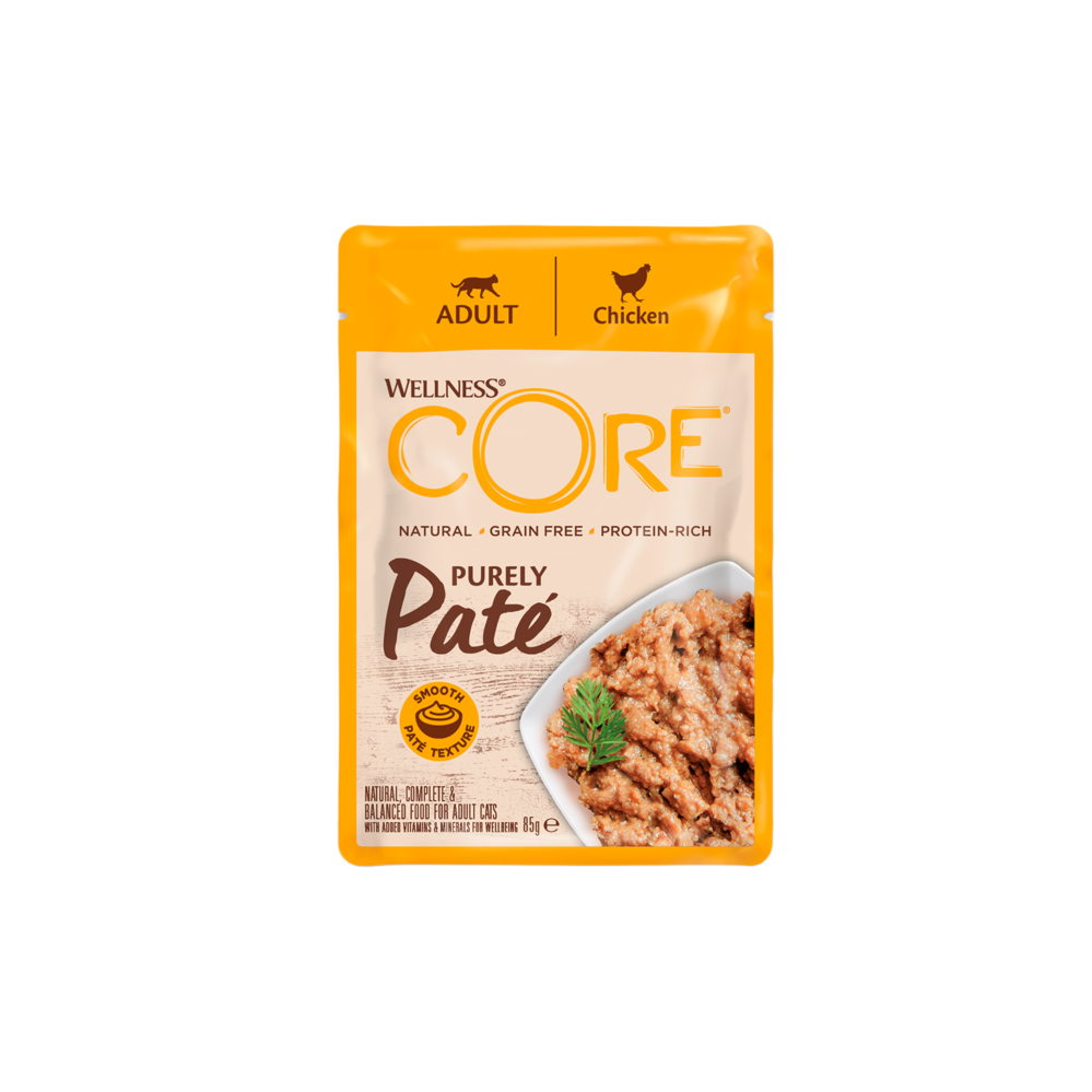 يعتمد Wellness CORE على فلسفة غذائية مفادها أن القطط، نظرًا لأصولها البدائية، تزدهر بنظام غذائي يتكون أساسًا من اللحوم. بفضل قوامه الناعم الذي تعشقه القطط ونكهته الغنية بالبروتين التي تتوق إليها، سيحظى Wellness CORE Purely Chicken بشعبية واسعة حتى بين القطط الأكثر حساسية!