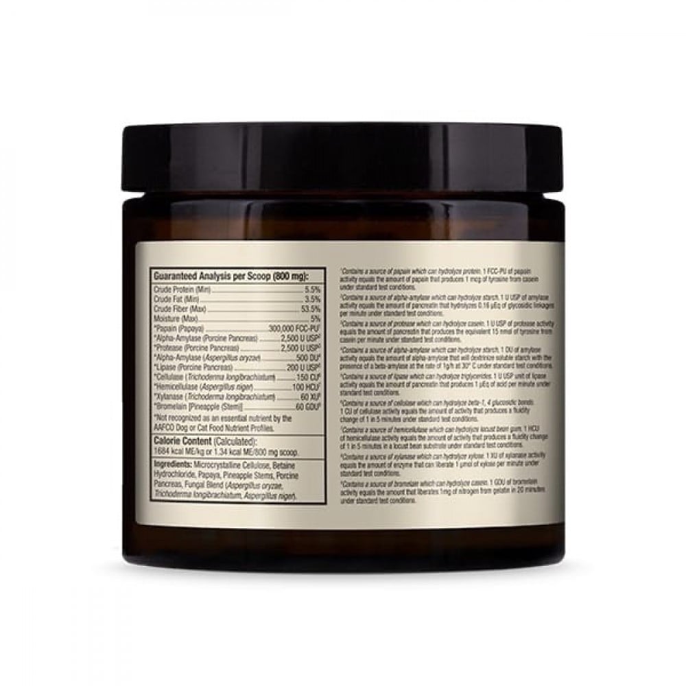 مع بنكرياتين من مصادر حيوانية يحتوي على البروتياز والأميليز والليباز لتفكيك العناصر الغذائية إلى طاقة.