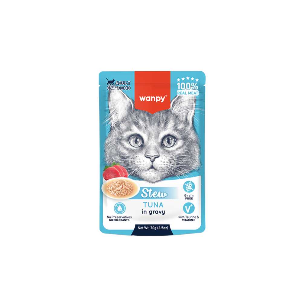 وانبي حساء التونة للقطط هو طعام لذيذ مطهو ببطء، مصنوع من تونة حقيقية 100%. كل كيس مليء بقطع لحم طرية مطهوة على نار هادئة لمدة 30 دقيقة للحفاظ على النكهة. غني بالتورين وزيت السمك لصحة الجلد والفرو، هذا الحساء مغذٍ ولذيذ. قدميه بمفرده أو كإضافة شهية.