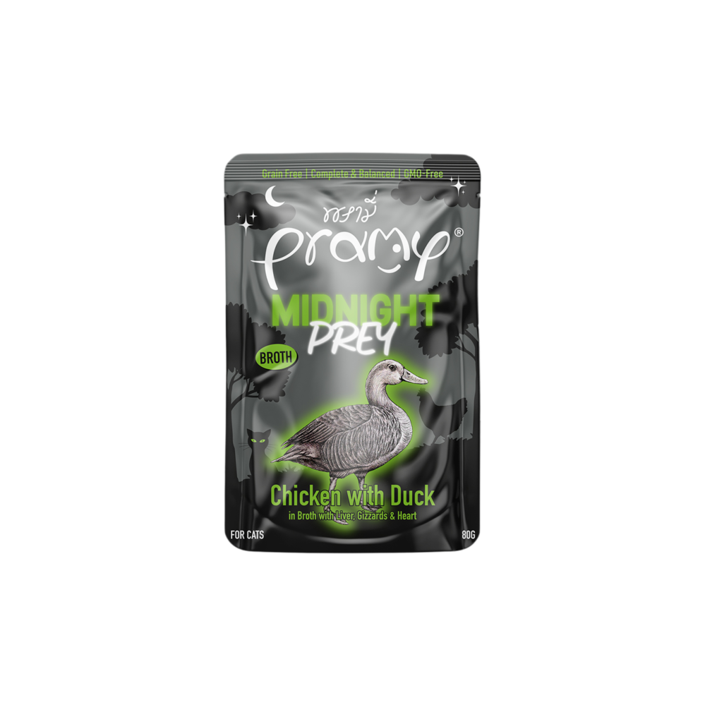 لحم دجاج، أعضاء دجاج (قوانص، كبد، قلوب)، مرق دجاج، لحم بط، نشا تابيوكا معدل، صمغ زانثان، فيتامينات، معادن، زيت جوز الهند (MCT)، زيت دوار الشمس، فركتو أوليجوساكاريد، تورين، زيت الكريل