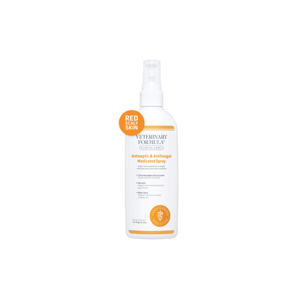 تركيبة بيطرية مطهر ومضاد للفطريات بخاخ متطور بالكلورهيكسيدين والكيراتين والصبار يساعد على التخلص من الالتهابات الجلدية الفطرية والبكتيرية لدى الكلاب والقطط، مثل تقيح الجلد البكتيري والتهاب الجلد التحسسي والفطري.