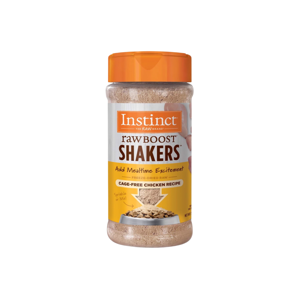 - أضف طعامًا خامًا إلى طعام قطتك. توفر Instinct Raw Boost Shakers Digestive Health الألياف والبروبيوتيك الحي الطبيعي للمساعدة في الحفاظ على صحة الجهاز الهضمي. تجمع وصفاتنا بين الدجاج الخالي من الأقفاص ومكونات الطعام الكاملة النابضة بالحياة والوظيفية - مجففة بالتجميد بنسبة 100% ومليئة بالنكهة والتغذية.