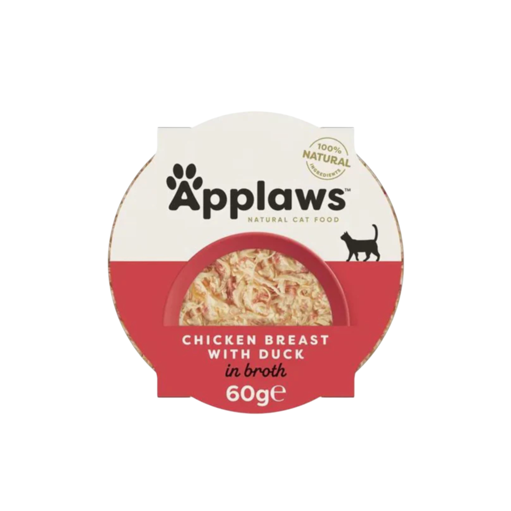 تحتوي على صدر دجاج مع الأرز في المرق وهي غذاء تكميلي طبيعي 100٪ للقطط البالغة.