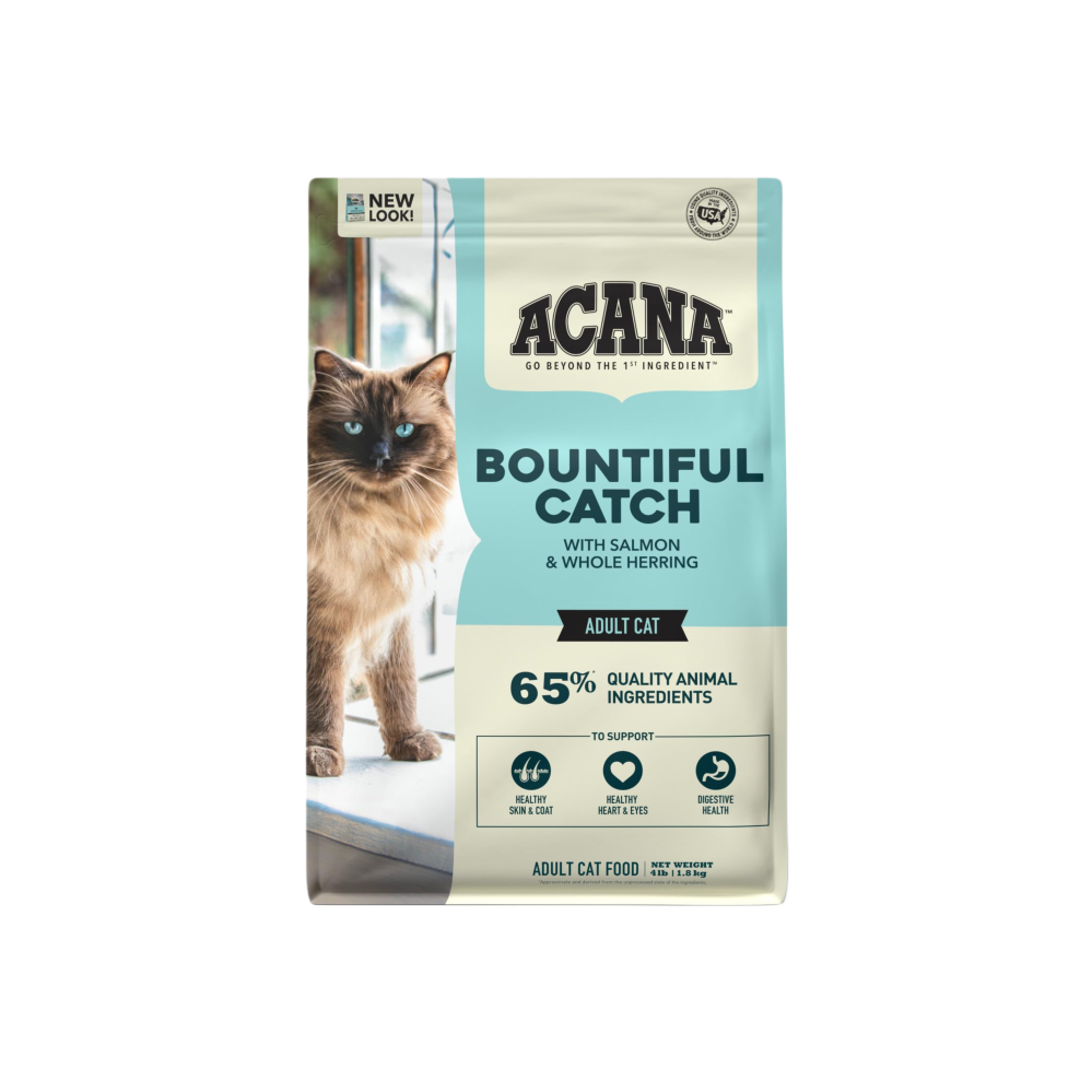 وصفة ACANA™ Bountiful Catch، المُصنّعة خصيصاً بوفرة من الأسماك، تُرضي قطتك بمكونات سمكية غنية. غنية بـ 65% من المكونات الحيوانية عالية الجودة1، بما في ذلك سمك السلمون النيء وسمك الرنجة الكامل، تحتوي Bountiful Catch على البروتين الحيواني الذي تحتاجه قطتك لتكون في أفضل حالاتها. كما تُساعد هذه الوصفة الغنية بالعناصر الغذائية على دعم الفوائد الصحية الرئيسية لقطتك، بما في ذلك صحة الجلد والفرو، وصحة القلب والعينين، وصحة الجهاز الهضمي. غذّي قطتك بوصفة غنية بالسمك، مُصمّمة خصيصاً للحفاظ على صحتها وسعادتها مع ACANA Bountiful Catch!
