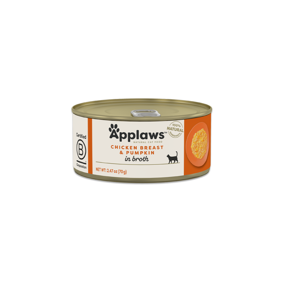 تحتوي على صدر دجاج مع اليقطين في المرق وهي غذاء تكميلي طبيعي 100٪ للقطط البالغة.