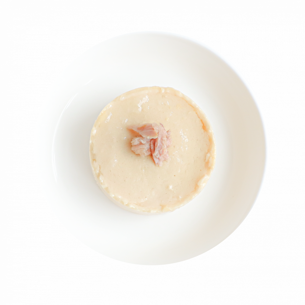 مرق السمك والماء دجاج، قطع سمك التونة ، زيت فول الصويا ، التونة ، عامل زيادة الكثافة ، الفيتامينات والمعادن ، عامل التبلور ، زيت السمك ، التورين ، الملح