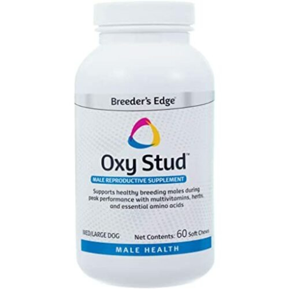 Breeder's Edge® Oxy Stud ™ هو مكمل غذائي للكلاب والقطط يحتوي على مزيج خاص من الفيتامينات والمعادن وجميع الأعشاب الطبيعية المفيدة للاحتياجات الفريدة لحيوانات تربية الذكور المنتجة