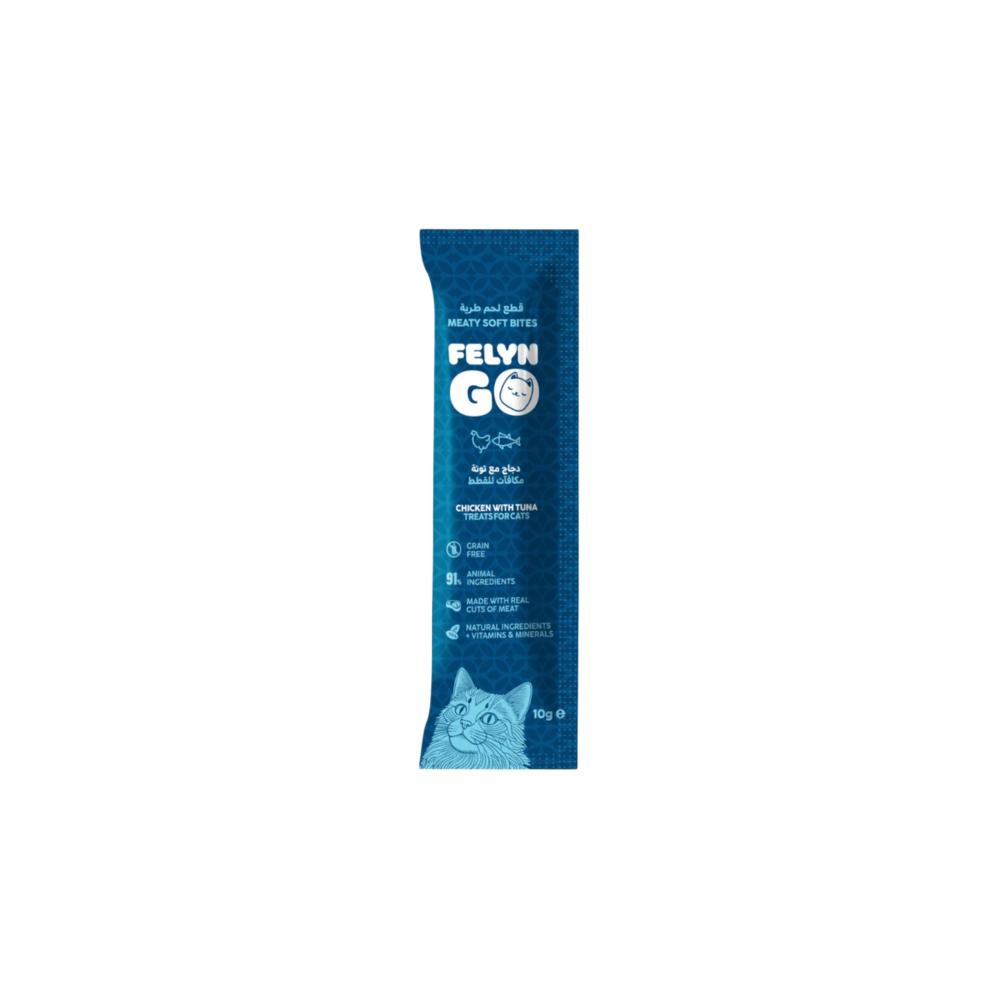 فيلاين قو سوفت بايت دجاج وتونة، خالية من الحبوب، مصنوعة من 91٪ لحم ودجاج وتونة حقيقية مع تورين. مثالية للمكافأة أو التدريب أو إعطاء الدواء