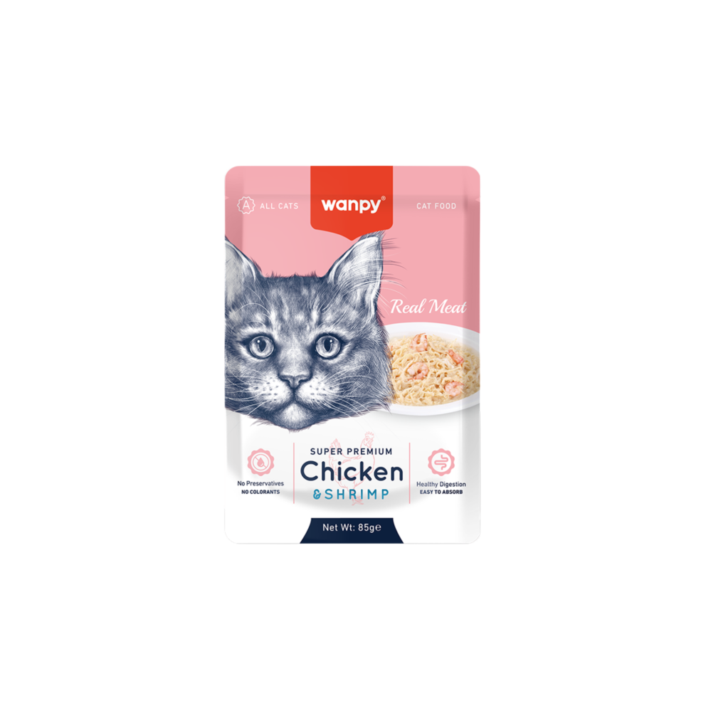 Wanby Super Premium and Shrimp Rich Original Steaks in Delicious Chicken Jelly are suitable for cats of all ages. Enjoy them from the sachet, crumble them onto a plate, or add them to dry food and meals for protein and delicious flavor.