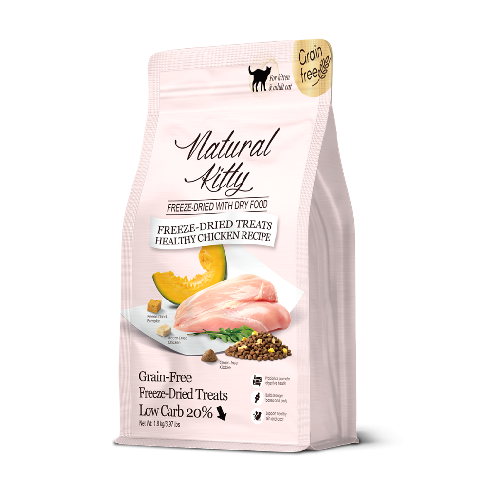 The Natural Freeze-Dried Cat Food Series offers a delicious recipe that combines a freeze-dried meat blend with pellets, providing your cat with an irresistibly delicious meal. This recipe is low in carbohydrates, high in protein, and grain-free, meeting the dietary needs of cats as carnivores. This healthy formula is fortified with two types of prebiotics and one type of probiotic—MOS and FOS, and Bacillus subtilis—to promote digestive health and overall well-being.
