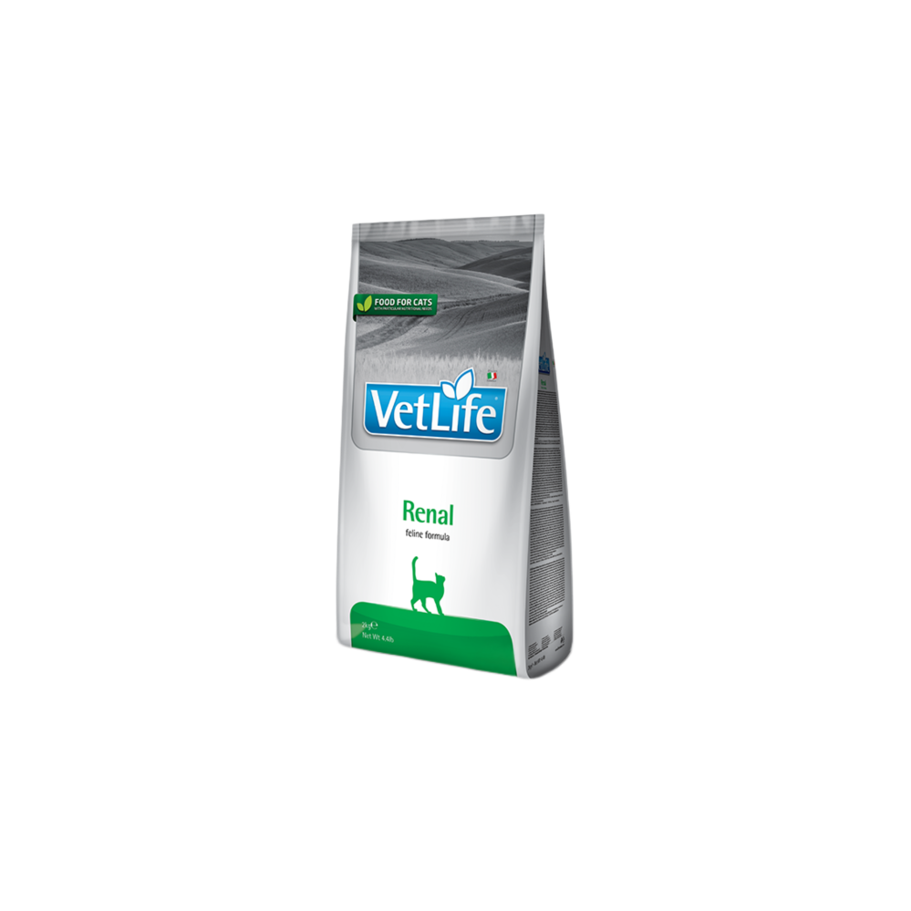 Chronic or transient renal failure. Aids in the treatment of congestive heart failure. Farmina Vet Life Renal is a complete cat food designed to support kidney function in cases of chronic or transient renal failure. This nutritional food contains low concentrations of phosphorus and a low protein content, but is of high quality.