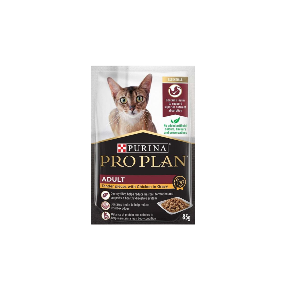 PRO PLAN Adult wet cat food is scientifically designed to be 100% complete and balanced, containing all the essential nutrients your adult cat needs, including a balance of protein and calories to help maintain a lean body condition and inulin to support better nutrient absorption. It's made with real chicken in a delicious broth for a delicious flavor your cat will love.